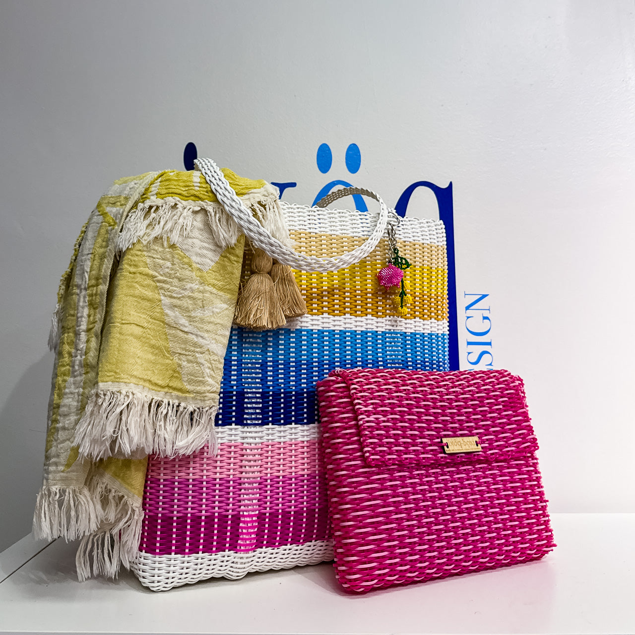 Our newest collection for 2026 ~ LAKA CHAKA ~ is full of color. The designs were created in response to Pantone's 2026 color of the year ~ Cloud Dancer (ie. white). We feel it's time to scream color & stories & richness of culture & not retreat into the clouds. Laka Chaka is bright & fun a colorful & inspired by a wayuu mochila designed by@lakachakashop.It combines marine blues with bright pinks & melon, three of my favorite colors.