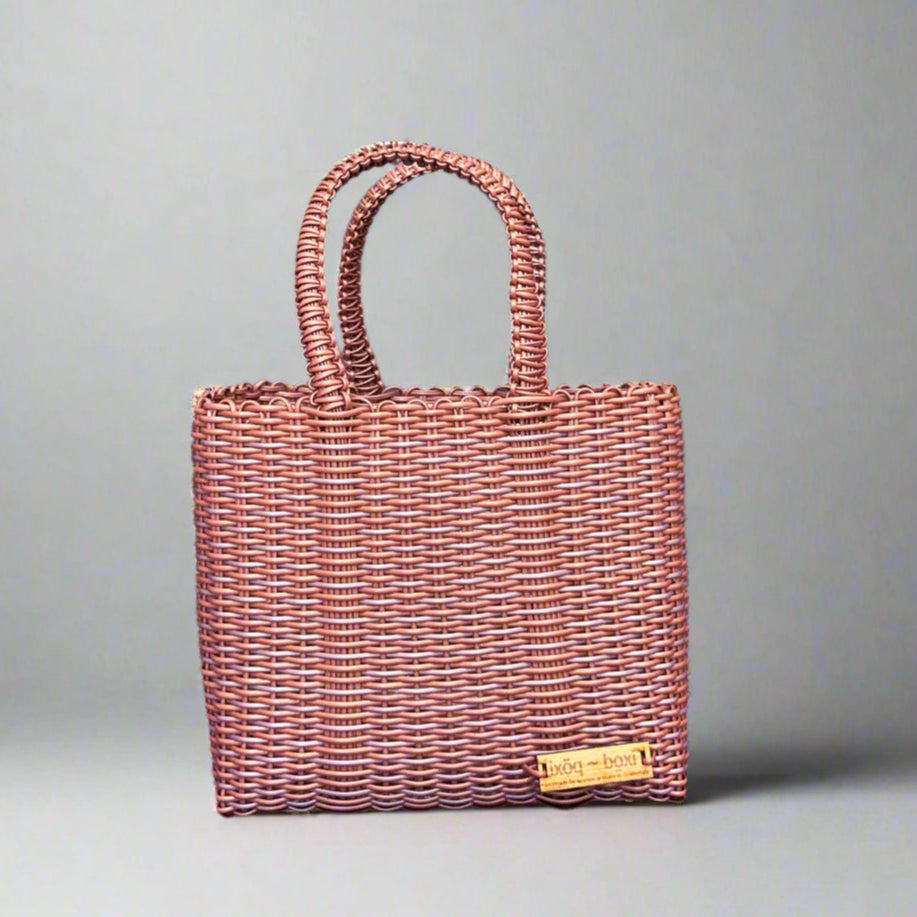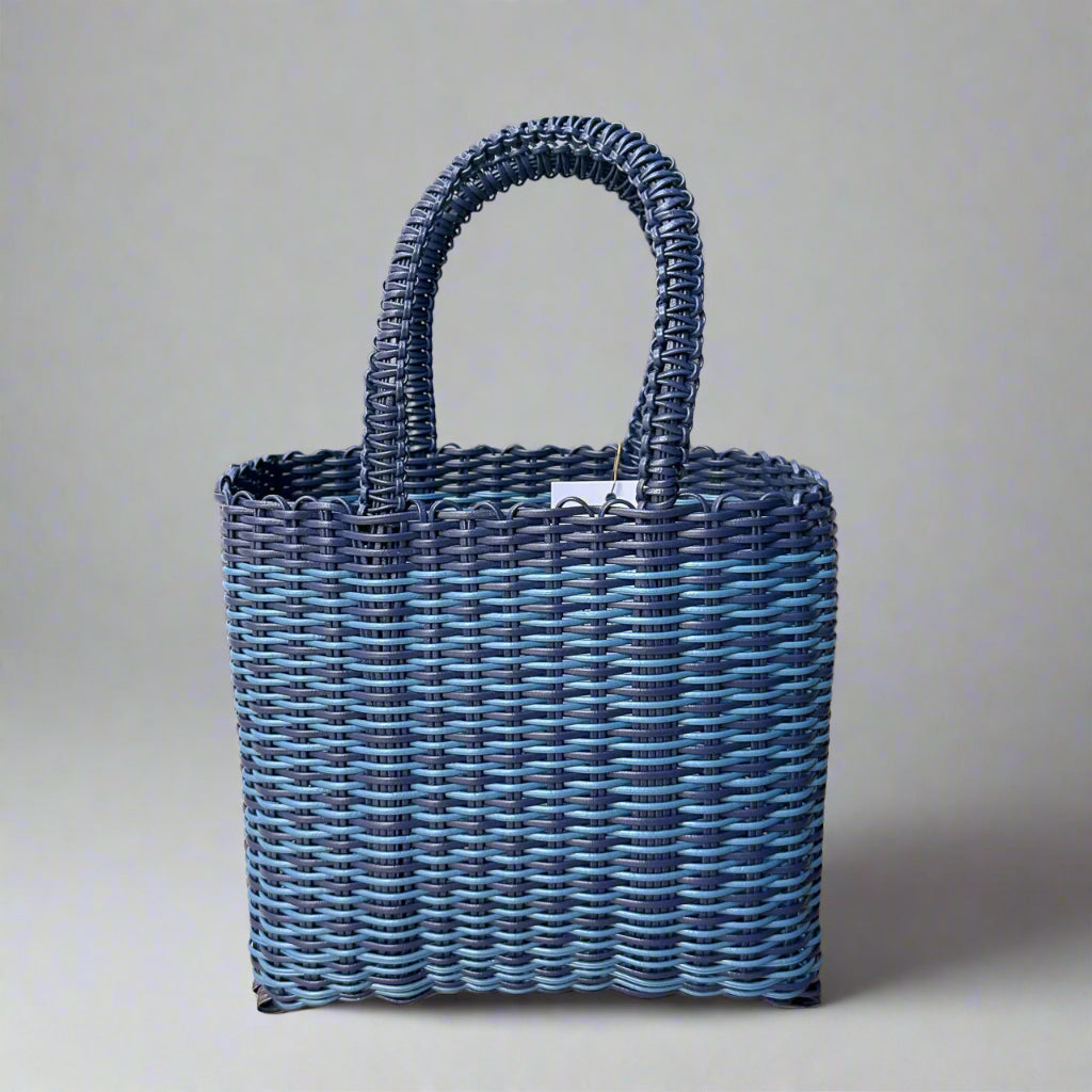 Designed by ixöq and handwoven by our partner artisans in Guatemala, using threads of recycled plastic, our medium size ‘cesta’ totes come in a variety of colors and designs. The boxy design creates a small tote that holds its shape and carries your essentials. The sturdy design means they won't tip over & you'll have everything quickly within reach. And they are very durable and easy to clean and 100% vegan!
